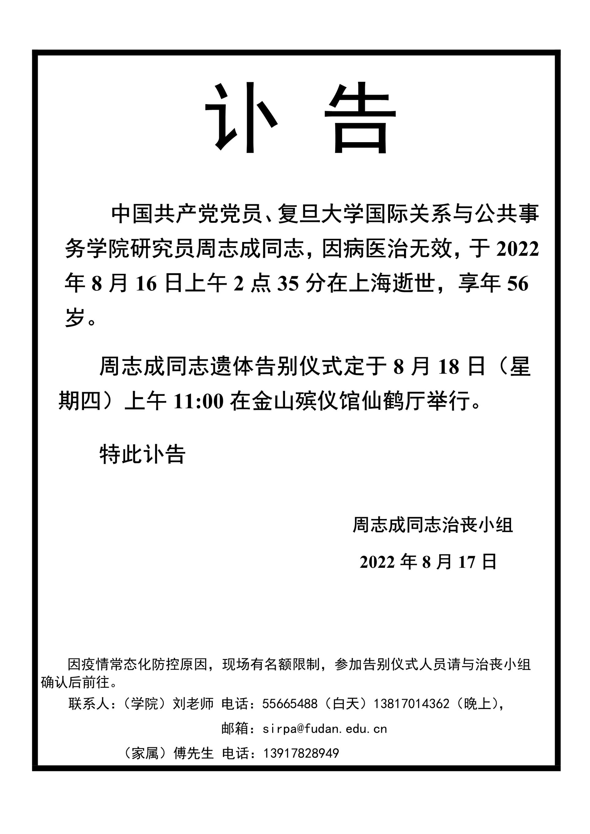 周志成老师讣告