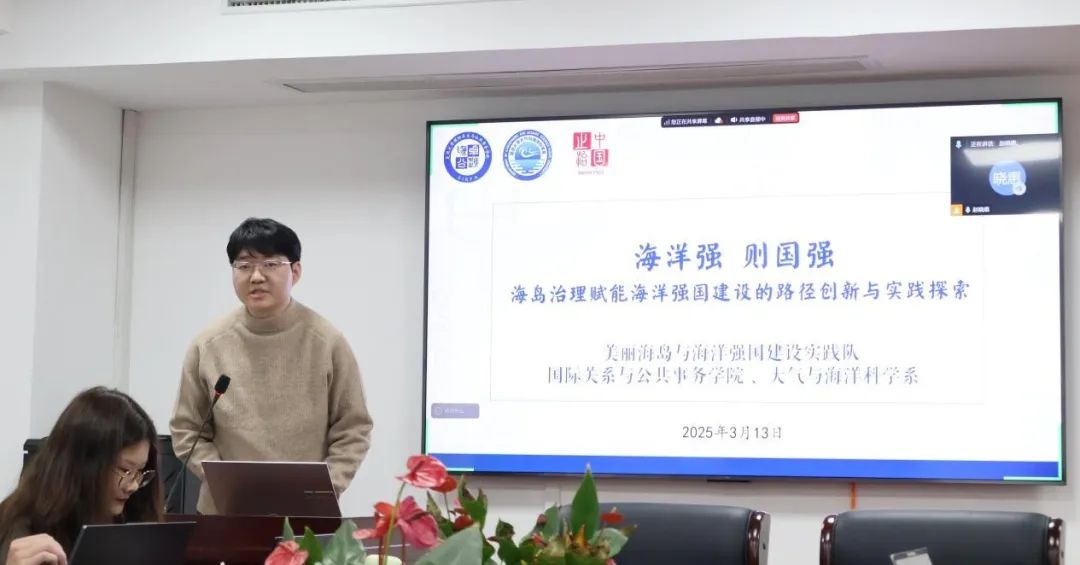 随后,学院中国之治国情育人重点实践项目和日常化实践项目的三支队伍代表分别就“海洋强、则国强:海岛治理赋能海洋强国建设的路径创新与实践探索”“党建引领何以重塑基层治理效能?——基于干部队伍建设促进乡村产业振兴的机制研究”“上海援藏三十载:对口支援中的区域协调发展与铸牢中华民族共同体意识研究”主题进行了汇报,重点介绍了其参与科创赛事的项目设计、调研发现和对策建议。