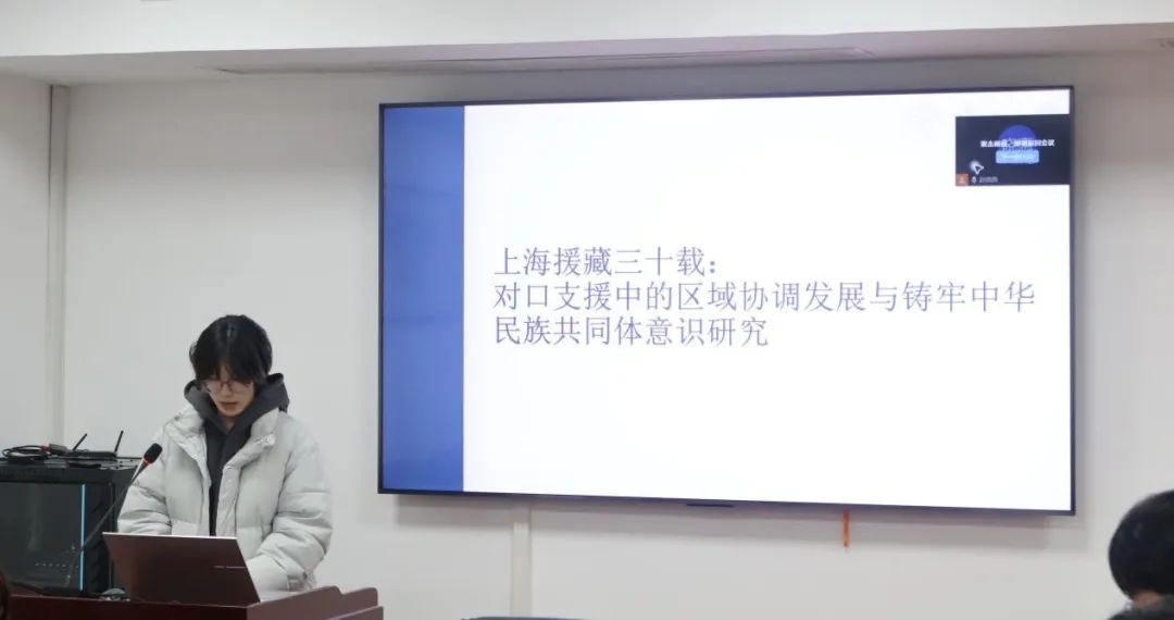 汇报结束后,甲干初老师逐一进行了点评与指导。针对“海洋强、则国强:海岛治理赋能海洋强国建设的路径创新与实践探索”项目,她指出,科创项目应当萃取实践调研精华,突出自身特色,提炼治理方案,重视凸显经济、社会或教育价值;针对“党建引领何以重塑基层治理效能?——基于干部队伍建设促进乡村产业振兴的机制研究”项目,她建议,项目可以充分利用纵向数据资料,通过历时性比较丰富质量内涵;针对“上海援藏三十载:对口支援中的区域协调发展与铸牢中华民族共同体意识研究”项目,她认为,可以着重挖掘援藏故事的精神闪光点,重视价值认同和情感共鸣,多维度凸显社会意义。此外,甲干初老师还对“卓越杯”等学生科创赛事的赛道特点、激励政策等内容进行了补充介绍,勉励学院本研同学积极参与、努力备赛。校团委双创竞赛部副部长高铭璐同学随后进行了更为详细的解读。