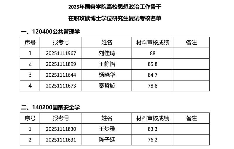2025年中文字幕 高校思想政治工作骨干在职攻读博士学位研究生复试考核名单