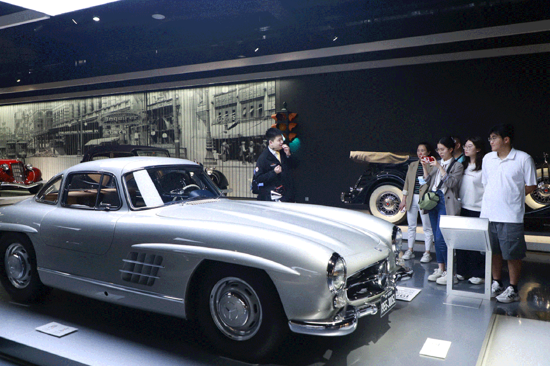 接下来,同学们继续前往上海汽车博物馆参观,深入了解汽车工业的发展历程。安亭镇六泉桥社区党支部书记、居委会主任沈佳燕热情欢迎同学们的到来。在讲解员的引导下,同学们参观了博物馆陈列的80余辆经典汽车,全面了解了汽车从诞生以来的发展历程。通过一楼历史馆内近30辆经典车型的展示,同学们直观地领略了汽车从最初诞生到现代技术演进的轨迹;二楼的古董车馆陈列着1900年至1970年间劳斯莱斯、凯迪拉克等品牌的40多辆经典车型,体现出不同时代汽车工业的风采;三楼的科技探索馆则通过互动体验方式,让同学们深入认识汽车结构和技术原理。从了解汽车工业的技术演进,到感受技术、经济与社会的共振,同学们深刻体会到以汽车工业为代表的产业升级对社会发展的深远影响。