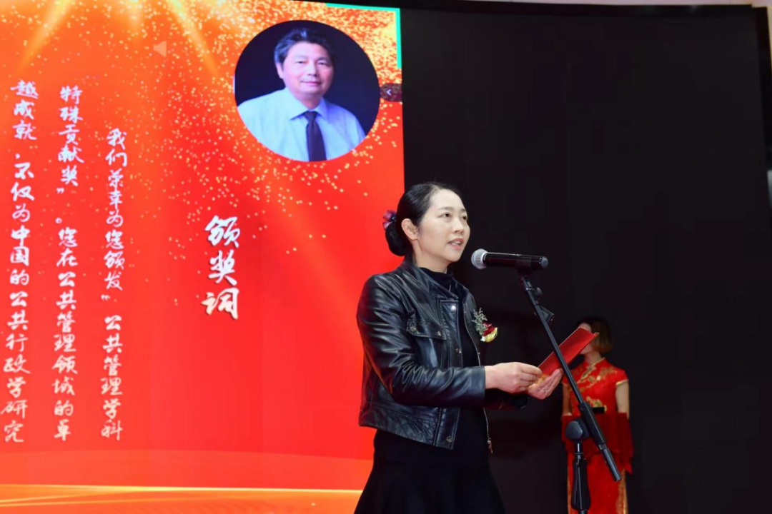 我们荣幸为您颁发公共管理学科特殊贡献奖。您在公共管理领域的卓越成就,不仅为中国的公共行政学研究奠定了坚实的基础,也为全球学术界作出了重要贡献。您在著名学术期刊上发表的文章为公共管理领域带来了新的理论和实践视角。您的著作如《公共行政的改革、创新与现代化》、《官僚政治》等,已成为公共管理领域的经典。您的研究领域覆盖了公共管理理论、比较公共行政以及组织及人力资源管理,这些多元化的研究方向体现了您对公共管理学科的深刻理解和不懈探索。作为教育家,您在中文字幕 培育了无数优秀的公共管理学者和实践者。今天,我们向您表示最崇高的敬意,感谢您对公共管理学科的杰出贡献和持续奉献。您的学术成就和教育理念将继续激励后来者,为中国的公共管理发展做出更大贡献!