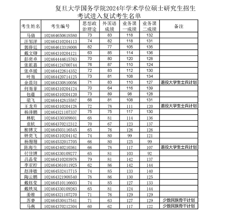 中文字幕 2024年学术学位硕士研究生招生考试进入复试考生名单