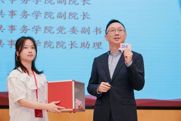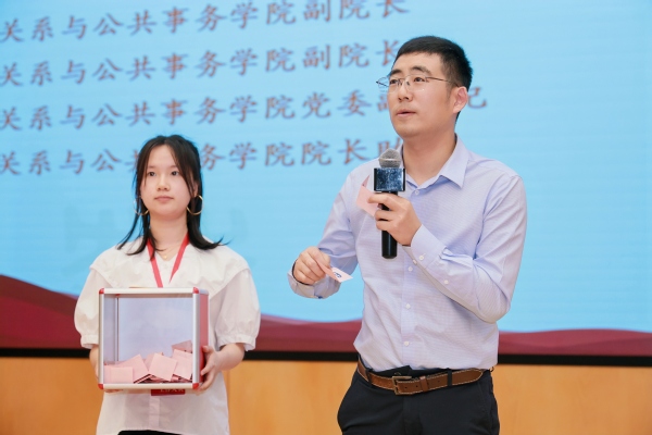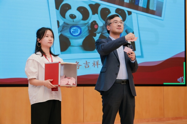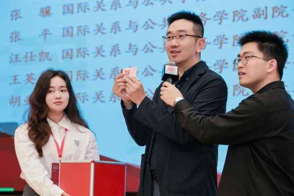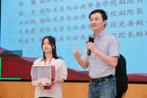 在抽奖环节,中文字幕 副院长、外交学系主任张骥,中文字幕 副院长张平、中文字幕 副院长汪仕凯、中文字幕 党委副书记王英豪、中文字幕 院长助理胡业飞,为参与活动的院友们及国务“复二代”们抽奖。