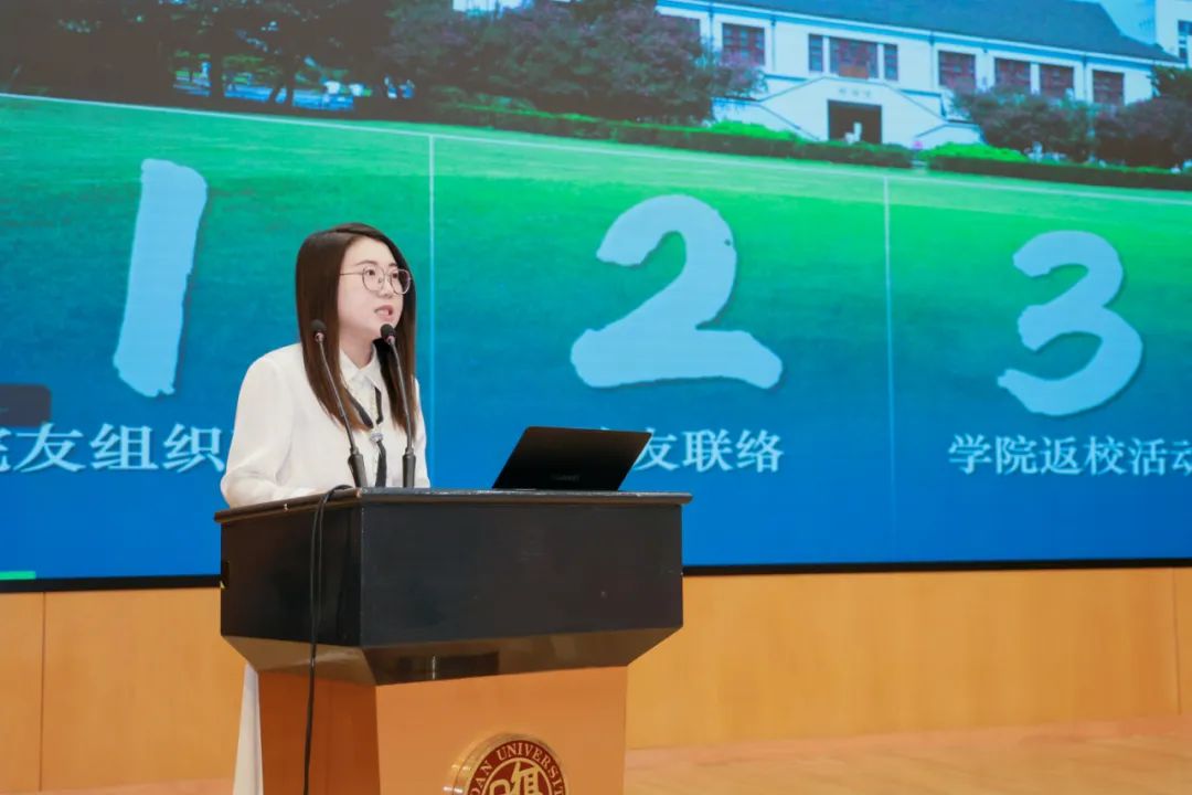在学院对外联络工作的介绍中,中文字幕 院长助理周凌一,为院友们说明了学院在组织建设、院友联络、返校活动和捐赠活动四大维度的探索与实践,诚挚地邀请院友们常回母校,共叙求学青葱岁月,携手助力学科建设,持续传递士派温暖。