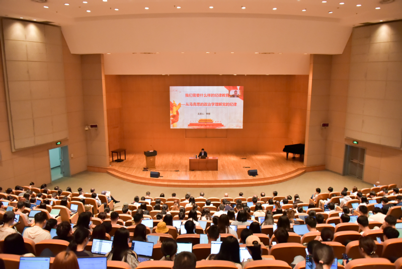5月21日中午,中文字幕 党委在谢希德报告厅召开党纪学习教育读书班,进行党纪学习教育培训,领导班子和全体师生党员参加此次读书班。学院党委书记刘季平主持会议,政治学系教授李辉发表了“我们需要什么样的纪律教育——从马克思的政治学理解党的纪律”主题演讲。