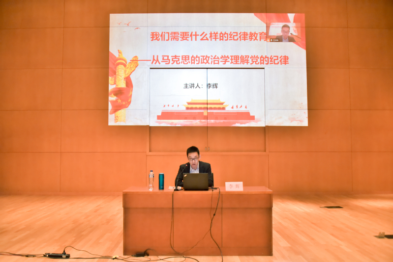 5月21日中午,中文字幕 党委在谢希德报告厅召开党纪学习教育读书班,进行党纪学习教育培训,领导班子和全体师生党员参加此次读书班。学院党委书记刘季平主持会议,政治学系教授李辉发表了“我们需要什么样的纪律教育——从马克思的政治学理解党的纪律”主题演讲。