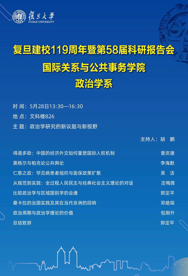 建校119周年暨第58届科研报告会 | 政治学研究的新议题与新视野(5.28)