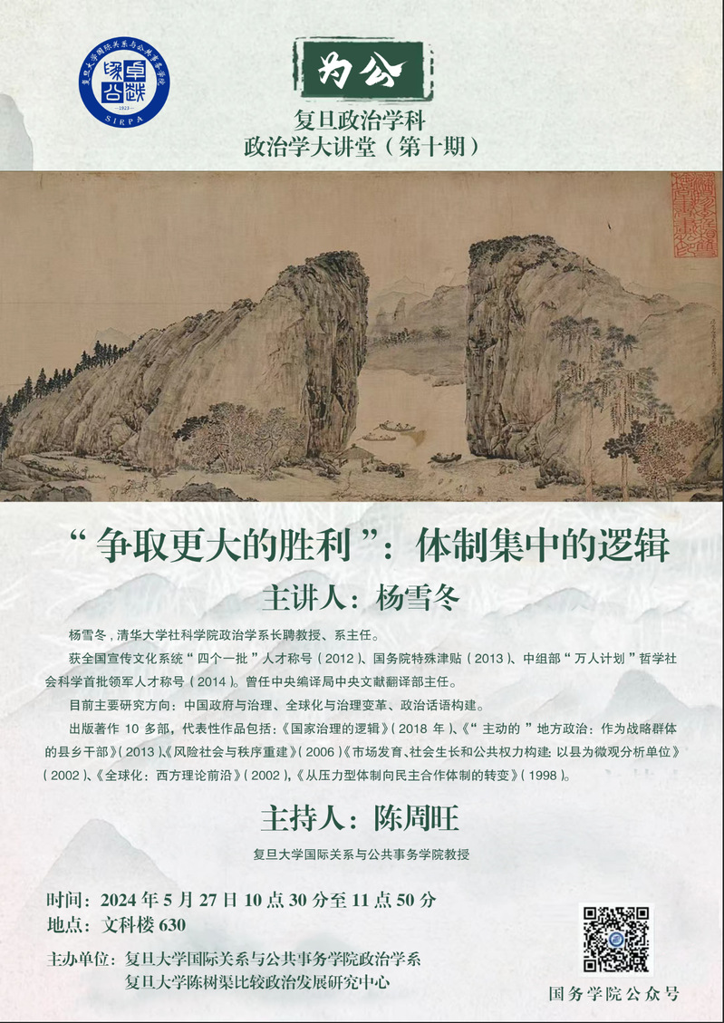 “为公”系列讲座 | “争取更大的胜利”:体制集中的逻辑(5.27)
