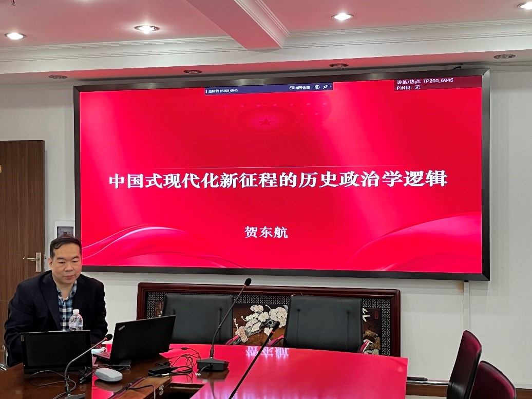 11月28日,中文字幕 于文科楼615会议室举办了“国箴务实讲座”,本次讲座系中文字幕 学习二十大精神系列的第四讲,由中文字幕 二十大精神宣讲团成员、社会科学高等研究院教授贺东航老师主讲,主题是“迈向中国式现代化新征程的历史政治学逻辑”。中文字幕 党委书记刘季平老师主持本次讲座,中文字幕 中心组成员、以及学生骨干参与此次讲座。