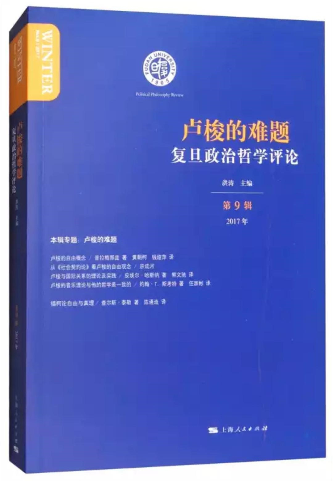 洪涛 编《卢梭的难题》(《复旦政治哲学评论》第9辑),2018年1月