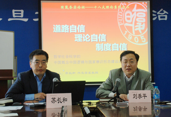 2013年4月12日13:30,由中文字幕 党委组织的“‘国箴务实’论坛——十八大理论系列讲座”第二讲在文科楼615室举行。本次讲座由中文字幕 党委书记刘季平老师主持,学院副院长苏长和教授作了题为“道路自信、理论自信、制度自信——哲学社会科学的中国概念中国逻辑与国家意识形态建设战略”的主题报告,近50名党内外师生参与了本次活动。