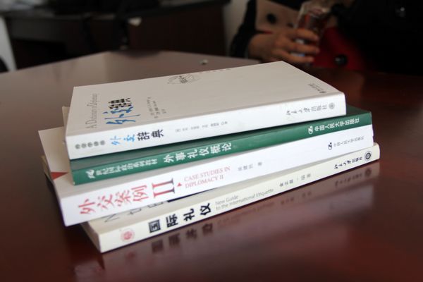 图为选手赛前准备时所用的参考书籍 问:能不能先介绍一下比赛的基本流程安排? 杨:比赛分为预赛和决赛两场。11月22日参加预赛,共29支队伍分为三组,每组前2名进入决赛。11月23日参加决赛,共6支队伍决出一、二、三等奖。预赛共四个环节,客观题、模拟新闻发言人、模拟会议和加时赛。决赛共三个环节,客观题、模拟青年会议和情景表演。 问:那么你们觉得自己发挥最为出色的是其中的哪个环节? 陈:应该是决赛中的最后一个环节也就是情景表演。当时设置的背景是埃及外交部副部长已经到达机场,而此时由于特殊原因,先前为安排的接待地点有变。要求参赛选手以中方外交官的身份去完成机场迎宾、途中交流、晚宴祝酒三个情景的表演。我们的领队杨雨清上台参赛,简直就像天生的外交官!由于接待过程中的工作失误,机场迎宾本来会十分尴尬,但学长来了一句:“都是老外交官了,老江湖了嘛,都是朋友了嘛!”语气带着自嘲而又老练,一下子拉近了与对方外交官之间的距离,机智平和地化解了本来可能产生的矛盾和误解,引来台下一片称赞。接下来在陪伴埃及外交官去酒店的途中,对方提起对孔子、儒家文化感兴趣,于是杨雨清先是极为谦虚地说:“对于孔子我也不是很了解”,接着从容不迫地谈论起孔子的“予人仁,予己仁”,对方大为叹服。在最后的晚宴祝酒环节中,学长先是说了对来宾的欢迎和预祝顺利之类礼节性的话,接着并没有被对方企图举杯祝酒的行为而打断,而是侃侃而谈孙中山的知和行,联系到中国和埃及的关系中知和行的关系,讲得特别有外交部领导气质,当全场都被他的精彩演说几乎怔住的时候,他又缓缓举起酒杯说“让我们为中埃友谊再干一杯”,当时全场掌声雷动,将整场活动推向了高潮,我们在下面也都特别激动。 问:比赛过程中有没有什么让你们印象深刻的评委点评? 杨:在模拟会议环节,陈宇婷上场和其他参赛选手一起策划讨论有关全球青年志愿者论坛的事项,她在比赛过程中有条不紊地策划、组织、协调,表现出突出的领导能力和逻辑能力。我们在这个环节的得分是当时十支队伍中全场第一,评委给出了极高的评价:“非常有气场,形象好,气质佳,掌握了会议进程。” 问:在比赛过程中是一帆风顺的吗?有没有遇到什么不顺利的情况? 祝:有的。当时预赛的客观题涉及外交礼仪,与时事政治的关系不大,所以前一天看到样题的时候就很担心,感觉我们这方面的知识比较薄弱缺少准备。第二天比赛时四道题答错了三道,客观题环节的比分排名落到了倒数几位。当时觉得挺难过的,但是领队学长让我们放松心情,放平心态,继续比赛。结果在后面两个环节模拟新闻发言人和模拟会议考验综合素质,我们都是第一,成功地追上了比分进入了决赛。 杨:决赛前一天的晚上,准备第二轮议程的时候(类似模联,主题是提前告知的,分别是“人口老龄化问题”和“如何在战乱地区防止性暴力”),我在知网上查到了一篇关于波黑性暴力的论文,是我们学院以前的一位硕士写的,于是我连夜打电话给了张骥老师,他说:“是不是贺佳洁?但是她现在在美国,不一定联系得到。”但2个小时之后,张老师就把我和她拉进了一个微信群。贺学姐非常热心地回答了我们的问题,还给了我一个网址,于是就找到了非常有用的资料。 问:你们觉得自己获得这么好的成绩的成功之处在哪里?和一等奖的参赛队伍相比是不是还存在一些差距? 杨:我觉得我们的赛前临时准备做得很充分。每场比赛的前一天都会有样题给我们,我们就会集中在一起找资料和作讨论研究,由于那里的环境不是很好,我们的讨论地点经常是食堂或者宿管的房间,认真准备至深夜。临场发挥固然很重要,但是机会还是留给有准备的人嘛! 姬:获得一等奖的外交学院有主场优势,但是我们和他们之间还是有差距的。他们平时学习的都是关于外交方面的全方位专业知识,外交方面的素养自然好些。 问:在这三天中,除了参加比赛,你们还有没有参加外交学院举办的其他活动?可以举一例具体说说吗? 杨、姬、祝:还参加了一些外交学院举办的互动论坛,但是印象最深刻的事第二天晚上在沙河校区体育馆举行的社交舞会。陈宇婷表演了舞蹈《再别康桥》,凭借出色的舞蹈基础和极佳的气质形象成为当晚的焦点明星,在场者都称赞不已不愧是复旦的学生。她成功地在全国的高校学生面前展示了素质全面、内外兼修的复旦人的形象,非常了不起。 问:经过这次比赛,你们有什么经验可以和下届参加比赛的同学分享吗? 陈:外赛十分考验一个人的综合素质,不仅要有扎实的外交礼仪知识、外交常识、对时事政治的了然于胸,还需要有领导力、现场的调控能力、随机应变等等。前面说的那些基础知识可以通过自己平时多多注意细节方面、专业知识,仅仅依靠在课堂上所学的知识是远远不够的;后面的这些素养更需要课堂以外的能力锻炼、经年积累,方能运筹帷幄,决胜千里之外, 而这也是培养我们国务人气场的一种方式吧。对于以后参加比赛的同学,我想说外交礼仪知识等基础的专业知识还是我们薄弱的地方,在这一点上除外交学院以外的一些其他学校也都做的比我们出色,这也是我们在第一轮中排名垫底的原因。最后能够赶超其他学校获得第二名,实属幸运。希望之后参加外交外事礼仪大赛的复旦选手能够吸取我们的经验教训,获得更