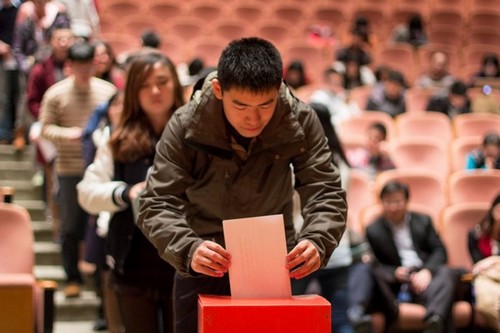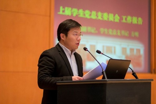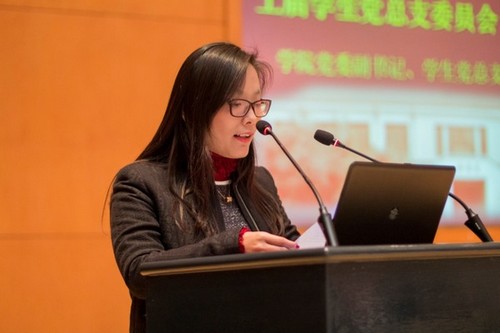 在计票期间,本硕博党支部代表进行了“我为学院发展建言”的展示。1314级本科生联合党支部在对学院院友导师制实施情况调研的基础上,提出了院友导师与学生互动的新机制。14级国际政治系研究生党支部和国际政治系博士生支部则对学院学生党总支工作、学院学生工作和学院未来发展三个方面提出了综合性建议。为学院建言的过程增强了国务学子的主人翁意识,提升了学生在学院公共事务决策和制定过程中的参与度。