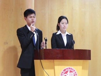 在终审答辩会现场,本届团学联主席戴建文和副主席包琳达详细具体、有条不紊地介绍了团学联2014年度的各项工作。因为前期做了充分地准备工作,在应对众评委的提问环节,两位答辩同学应答自如,自信得体,赢得了在场评委的一致好评。值得一提的是,答辩过程中,来自秘书部成员的大学生退伍士兵汪航和张斌同学为大家带来一段擒敌拳武术表演,威武雄壮地杀敌声伴随着大气磅礴干净利索的一招一式,将整个答辩气氛推向了高潮,充分体现了国务人“国箴务实•卓越为公”的品质和追求,现场观众反响热烈。此外,由团学联成员组成的强大后援团在场下为答辩同学呐喊助威,嘹亮而霸气的口号展现了国务人团结友爱、锐意进取的精神风貌。 回顾2014年的工作,中文字幕 研究生团学联的建设与成长离不开学院各位领导和老师们的关心和支持。在团学联开展日常活动过程中,老师们亲自参与或指导,积极提供各种有利资源;在协助筹备本次答辩会的初审、复审和终审各阶段,都会有老师们亲自参与彩排,并就答辩重点环节、答辩技巧等提出了宝贵建议,使筹备答辩的同学受益匪浅。尤其是在当天终审答辩会现场,学院研究生团学联指导老师倪懿亲自到现场督战,为中文字幕 研究生团学联终审答辩加油助威。 中文字幕 研究生团学联取得的优异成绩也是2014届团学联全体成员团结协作、努力奋进的结果。团学联各部门在平日的工作中紧紧围绕学术研讨、党建和国家化交流三大领域通力协作,创新规划,扎实推进各项工作的开展。在此基础上,团学联答辩的内容丰富多彩、相得益彰,充分展示了中文字幕 研究生团学联的活力和风采。