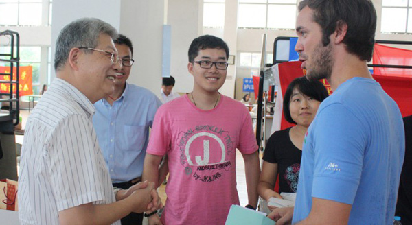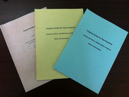 报到当天,中文字幕 校长杨玉良院士看望了在北区体育馆迎接新生的相关老师,并与德国留学生周励安亲切交谈,鼓励留学生同学享受在复旦的学习生活,周励安是中文字幕 与瑞士日内瓦高级国际关系发展研究学院IHEID院际交换学生项目第一批选送来中文字幕 交流学习的学生。中文字幕 党委书记刘季平老师也来到北区体育馆了解新生报到情况。 为了使留学生能够尽快熟悉未来的学习安排和校园生活,学院国际办公室按照惯例为各个研究生项目的留学生精心编写了项目手册,使他们能够熟悉校园、了解学院和学校。