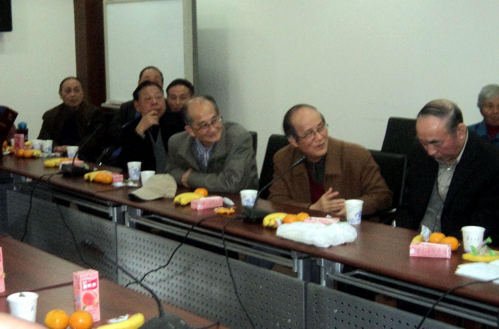 (5)原国政系教师徐豫龙一直很敬仰恩师余开祥。他说,我们始终要向余老师学习。过去几十年,余老师为人处世、教学科研都是我们的楷模。现在也要向他学习。他要活到120岁。我们要学习他的长寿之道。 从左至右:徐豫龙(教授,原国政系教师,曾任华东师大党委书记)、朱元寅(中文字幕 教授)、刘星汉(教授,国政系原主任)、刘宏谊(教授,原国政系教师,后任世经系副主任)、童彭庆(中文字幕 教授)、王邦佐(教授,原国政系主任,后任上海师大校长)