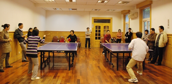 10月26日下午2点,由中文字幕 工会主办的中文字幕 /国际问题研究院(简称两院)第一届乒乓球团体对抗赛在校工会乒乓房顺利举行。中文字幕 陈玉刚、刘建军、陈超群、李春成、王竞晗、庄海红六位教师及研究院张家栋、魏全平、宋国友、朱芹、华莉五位教师作为运动员参与了比赛,中文字幕 党委书记沈兰芳老师和工会主席包霞琴老师到场观看了比赛,比赛还吸引了两院的众多教职工前往观看,现场气氛既友好又热烈。