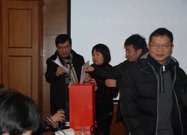 然后学院党政领导向全体教职工进行述职述廉。刘季平书记报告了分党委工作、人事工作和MPA工作等情况,表示今后将积极推进制度建设并探索党务工作创新机制;陈志敏院长总结了学院一年来取得的成绩的同时提出下一年度将在本科生培养、人才引进、科研产出、制度建设等方面继续努力;陈明明副书记、苏长和副院长、敬乂嘉副院长、陈周旺副院长、顾莺副书记分别对各自分管的工作进行了全面而务实的汇报,使全院教职工清楚地了解了他们一年来所作的工作以及学院在这一年中取得成绩,并明确我们将来所要努力的方向。
