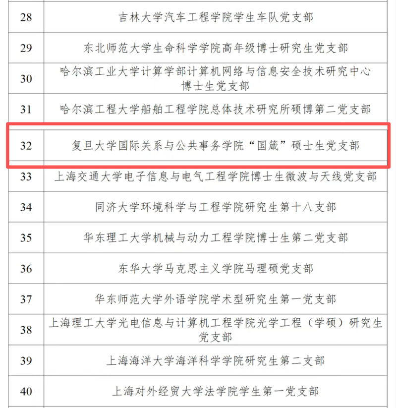 中文字幕 “国箴”硕士生党支部成立于2020年9月,支部传承复旦政治学百年底蕴,秉承“卓越为公”的理念凝聚党员群众,服务国家治理与全球治理,在组织建设、党员教育、功能发挥等方面拓展出了一条独具特色的建设方法,切实发挥示范引领作用,连续四次获评中文字幕 研究生示范党支部。