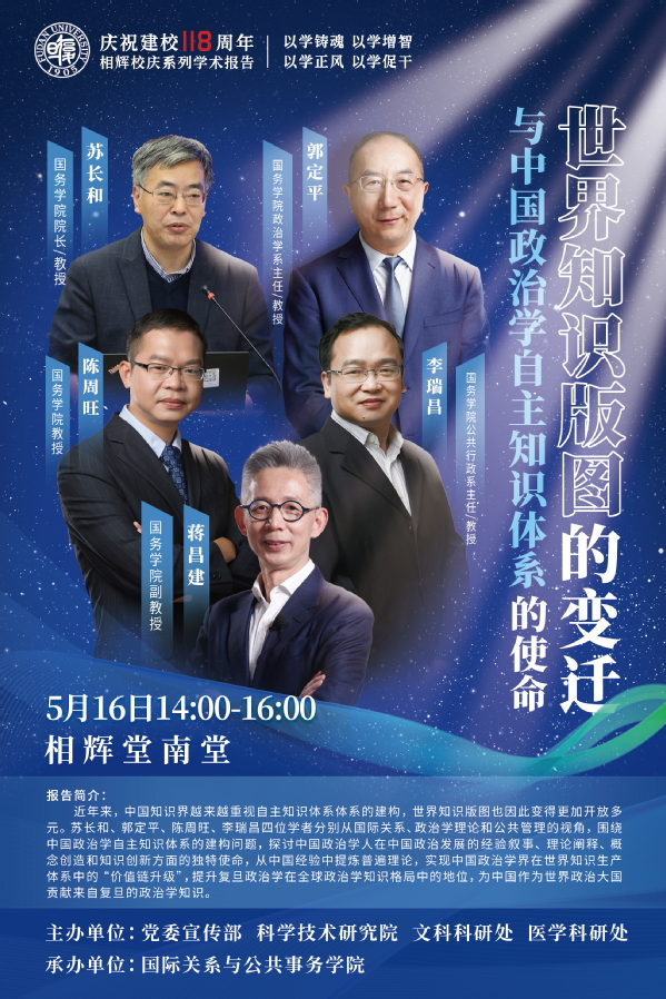 118周年校庆系列学术报告 | 世界知识版图的变迁与中国政治学自主知识体系的使命(5.16)