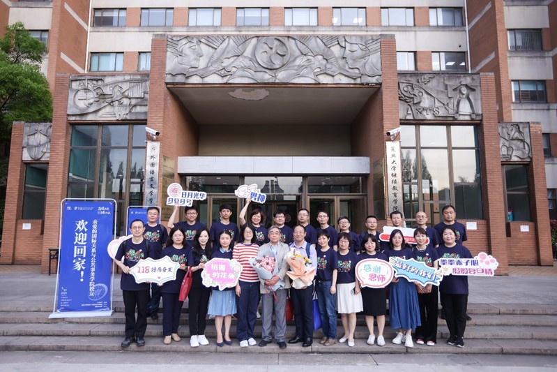 班会课结束后,与会教师代表和院友们在文科楼前拍照留念,并于旦苑三楼共进晚餐享受欢乐时光。老师和同学们相约建立长效常聚机制,定期聚会,彼此相见!