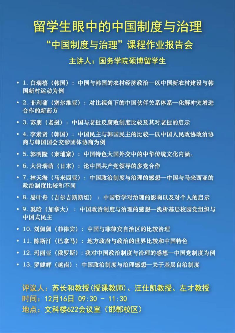 留学生眼中的中国制度与治理——课程作业报告会(12.16)