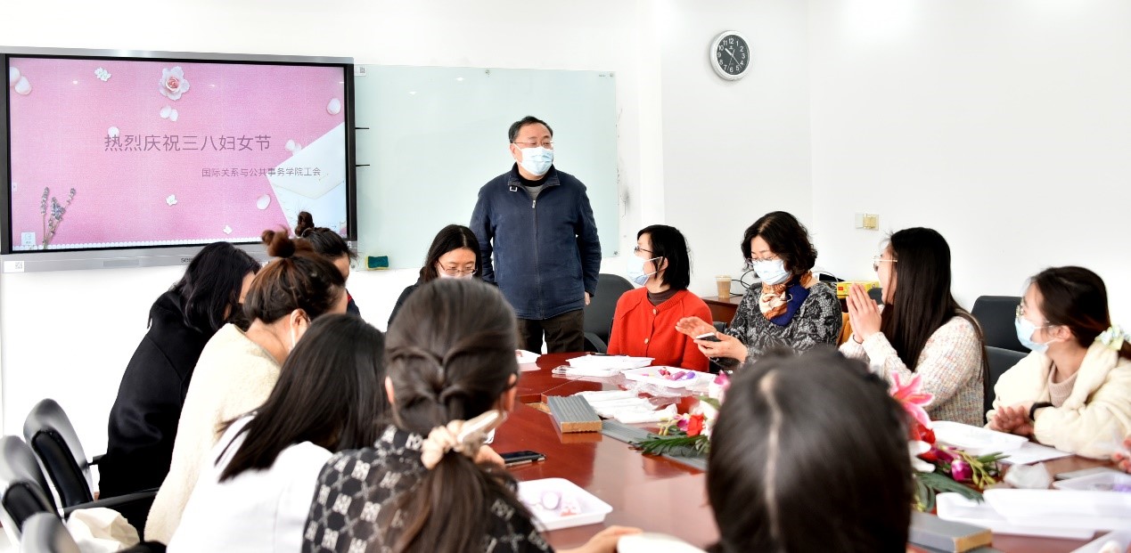 学院的党委书记刘季平、学院工会主席陈水生到场给女老师们送来节日的祝福。